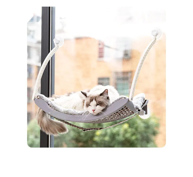 Cats love to observe their surroundings from an elevated position. This window hammock provides just that - a comfortable, stable place with a clear view outside. The high-quality suction cup mechanism holds reliably, while the ergonomic design ensures cosy hours. Ideal for curious cats who like to watch what's going on outside.