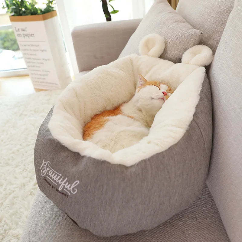 Cuddly Cat Bed With Ear Design - Soft And Comfortable For Cats And Small Dogs