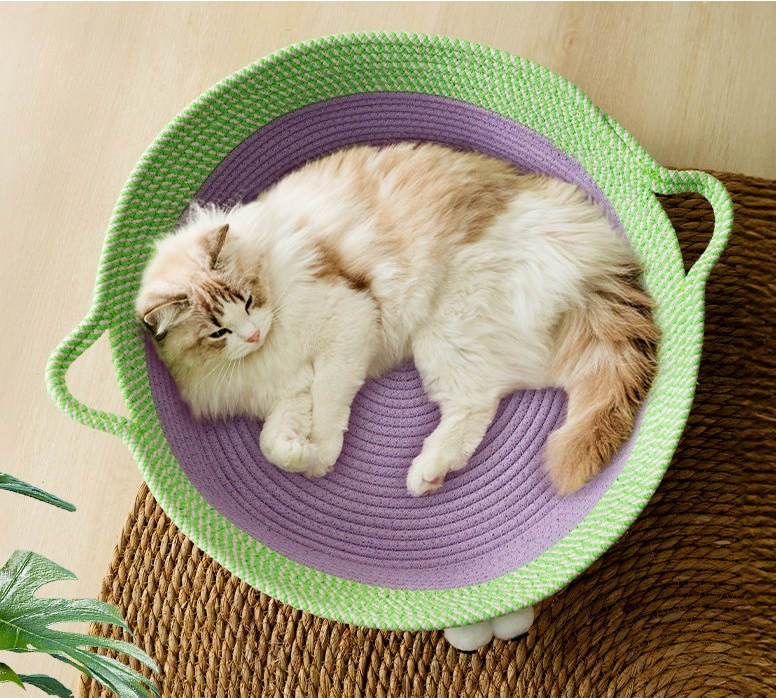 The bed is light enough to move around easily, yet sturdy enough for your cat to use as a permanent resting place. Thanks to the practical carrying handles, you can easily move it to the living room, bedroom or even the balcony. The hand-woven structure also ensures excellent air circulation, which supports the hygiene and freshness of the bed.