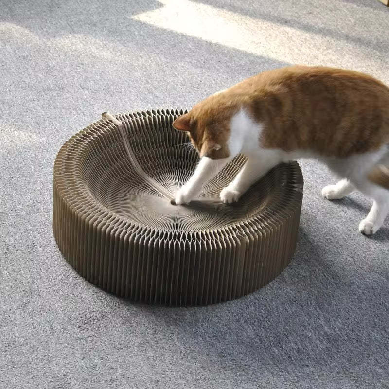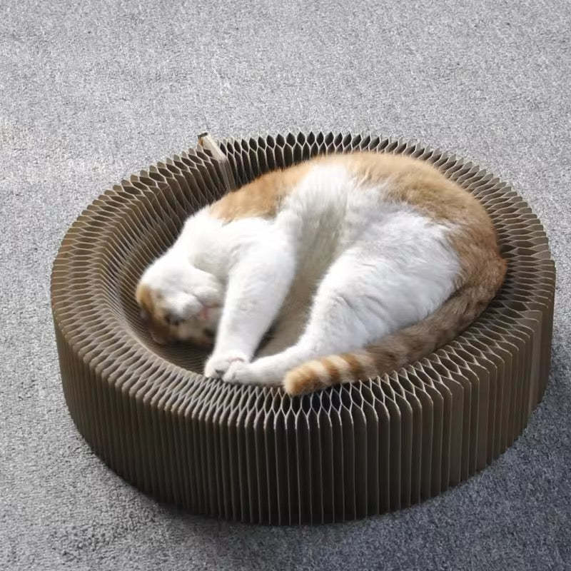 The Magic Play and Scratch Bed for Cats offers a versatile and comfortable solution to encourage your cat's natural instincts. Made from high-quality, eco-friendly materials, it allows your cat to scratch, play and rest - all in a stylish design that fits into any home.